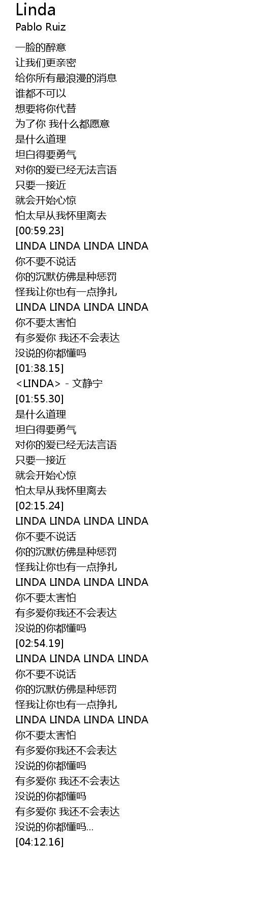 | [01:39.56] | LINDA wén jìng níng |