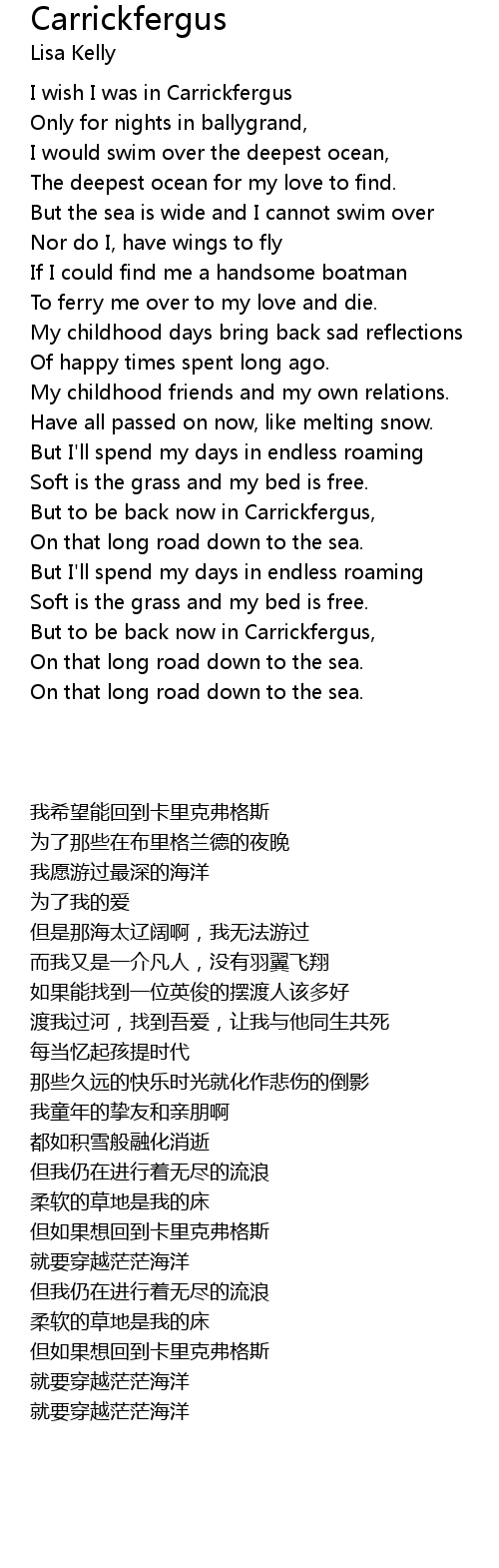 I wish I was in Carrickfergus |