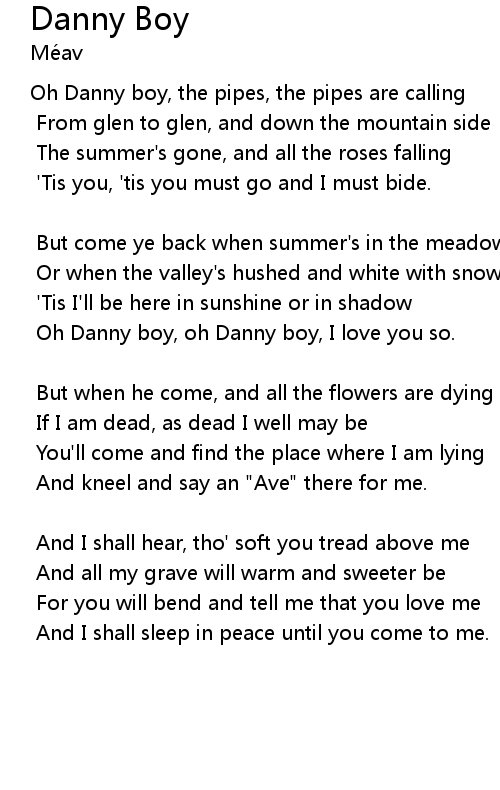 Oh Danny boy, oh Danny boy, I love you so. |