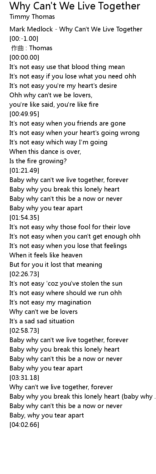 | [03:00.45] | Baby why can't we live together, forever |