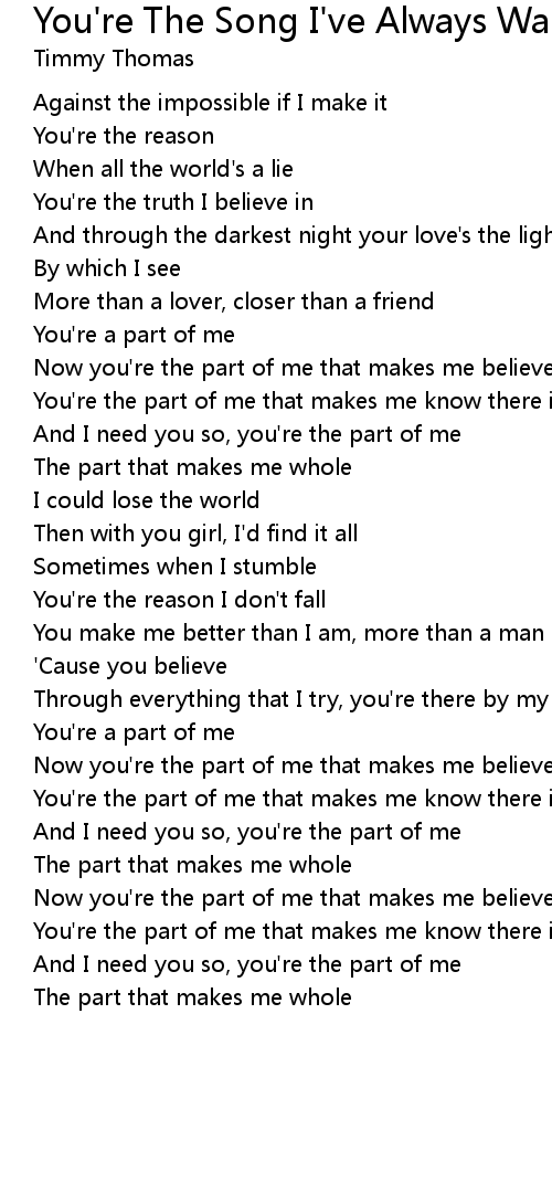 And I need you so, you're the part of me |