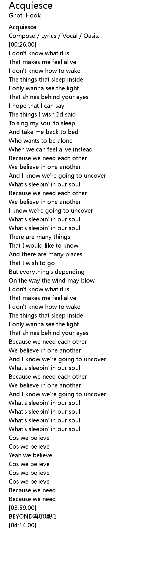 | [00:00.00] | Acquiesce |