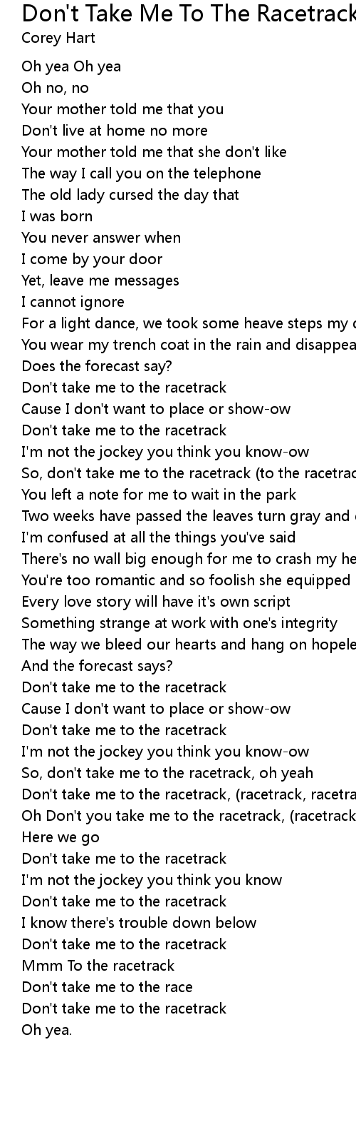 Oh Don't you take me to the racetrack, (racetrack, racetrack) |