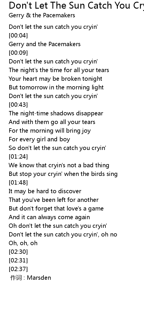 | [02:15] | Oh don' t let the sun catch you cryin' |