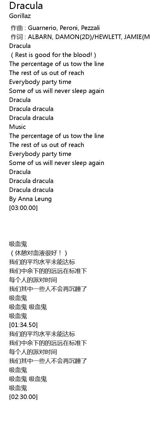 | [00:01.00] | 作词 : ALBARN, DAMON(2D)/HEWLETT, JAMIE(MURDOC) |
