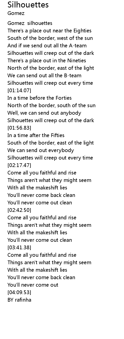 | [00:47.20] | Silhouettes will creep out of the dark |