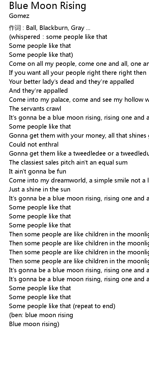 | It's gonna be a blue moon rising, rising one and all, all alone | |