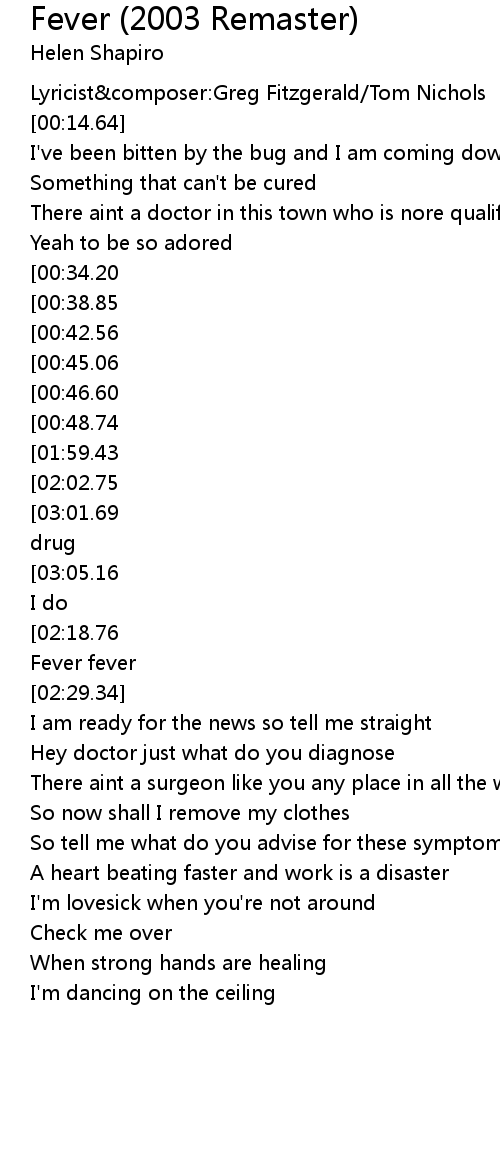 [02:53.64][01:59.43][01:42.83][00:50.73] Fever sure has got me good