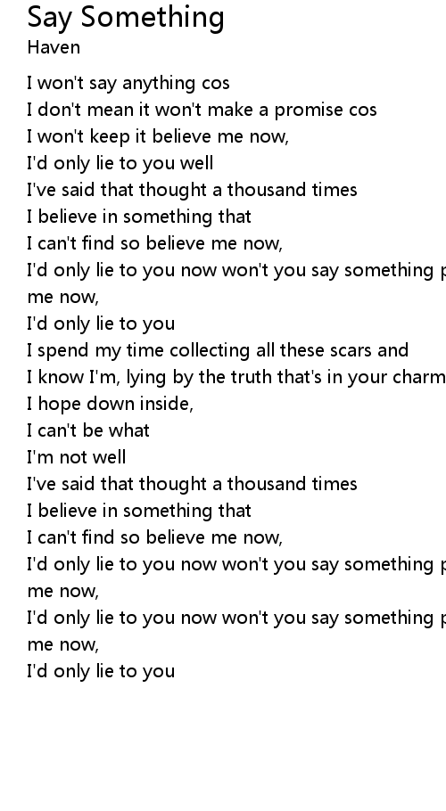 I'd only lie to you now won't you say something please say something and believe me now, |