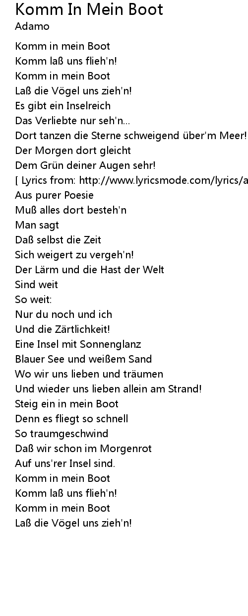 | Lyrics from: http: www. lyricsmode. com lyrics a adamo komm_in_mein_boot. html | |