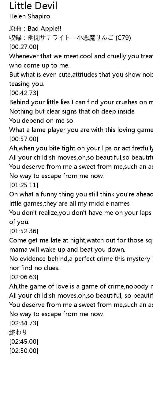 | [00:22.50] | 収録:幽閉サテライト - 小悪魔りんご (C79) |