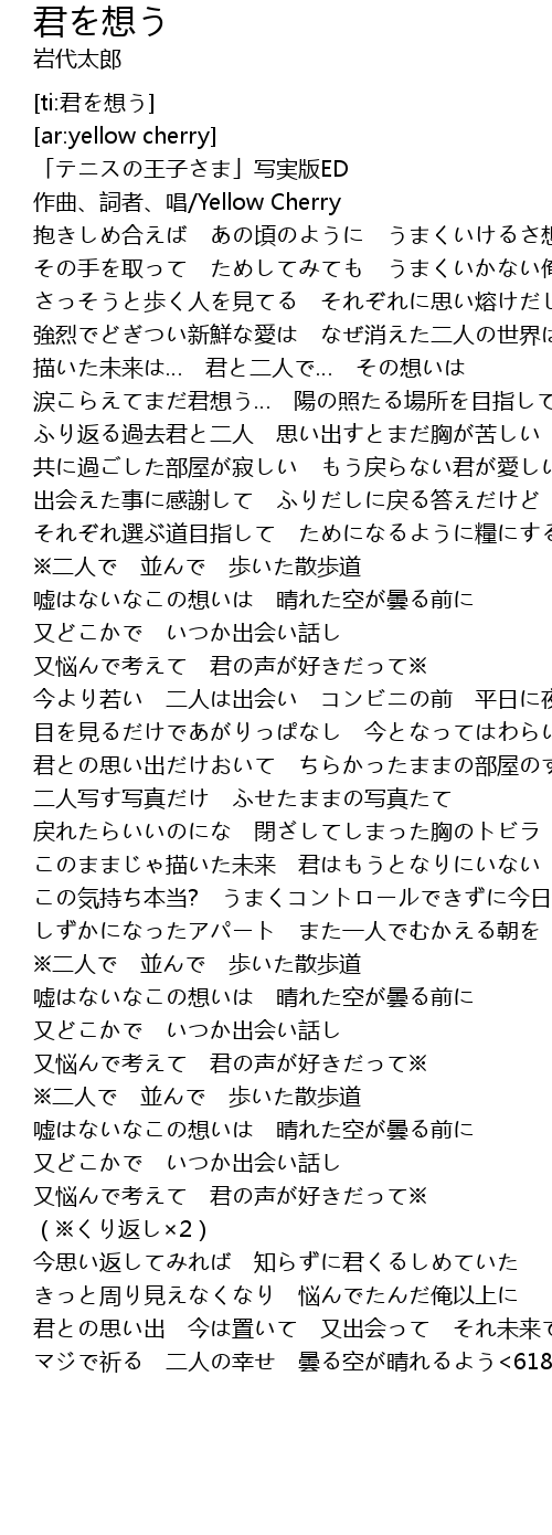 | [00:00.836] | 「テニスの王子さま」写実版ED |