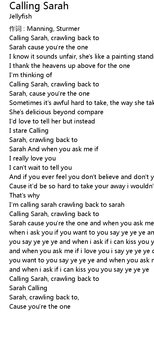 | I' m calling sarah crawling back to sarah | |