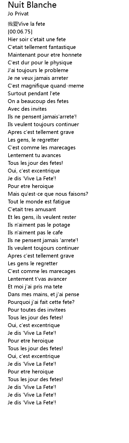 | [00:48.79] | Je dis ' Vive La Fete'! |