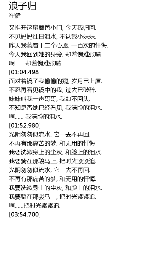 | [02:56.900] | 我要骑在那骏马上, 把时光紧紧追. |