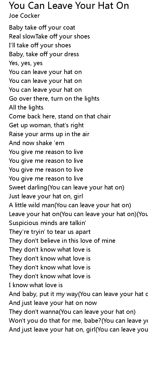 Leave your hat on(You can leave your hat on)(You can leave your hat on)