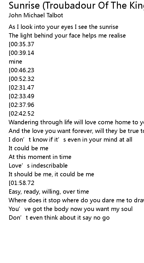 | Song | Sunrise (Troubadour Of The King Album Version) |