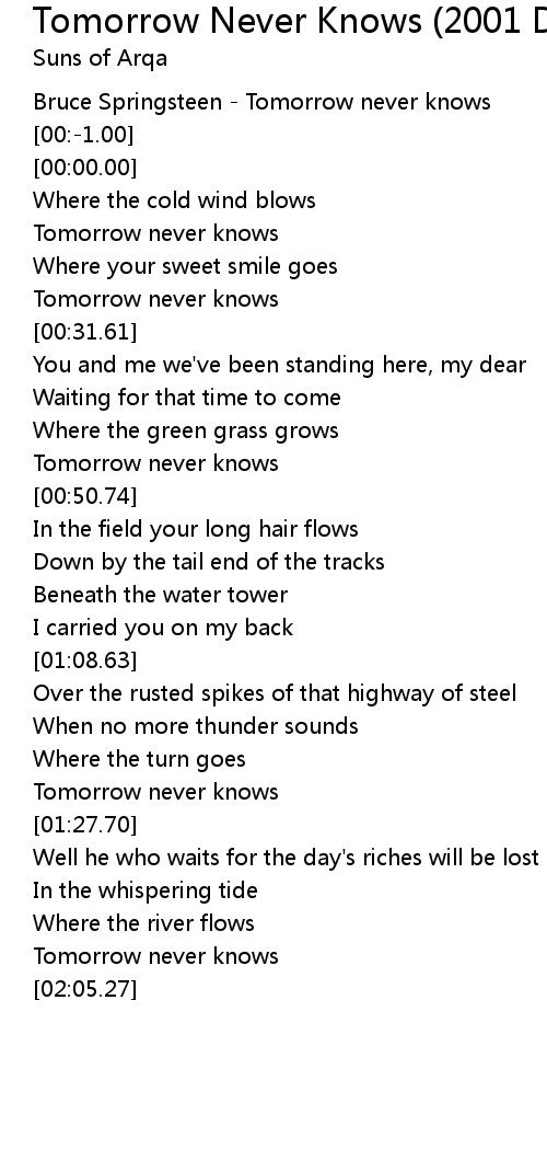 [00:-2.00] Bruce Springsteen - Tomorrow never knows