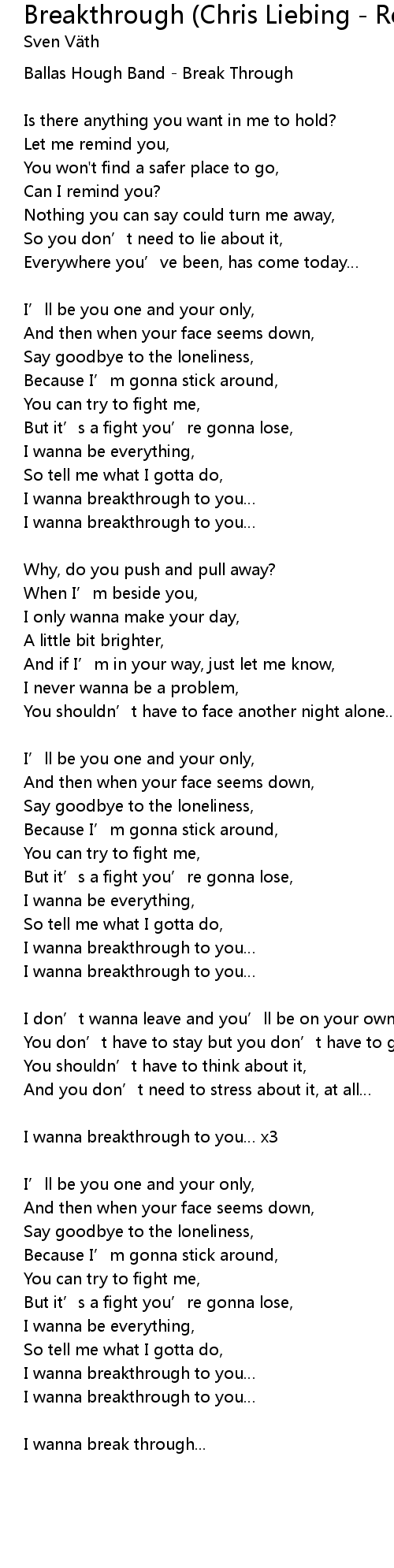 | Song | Breakthrough (Chris Liebing - Remix Edit) |