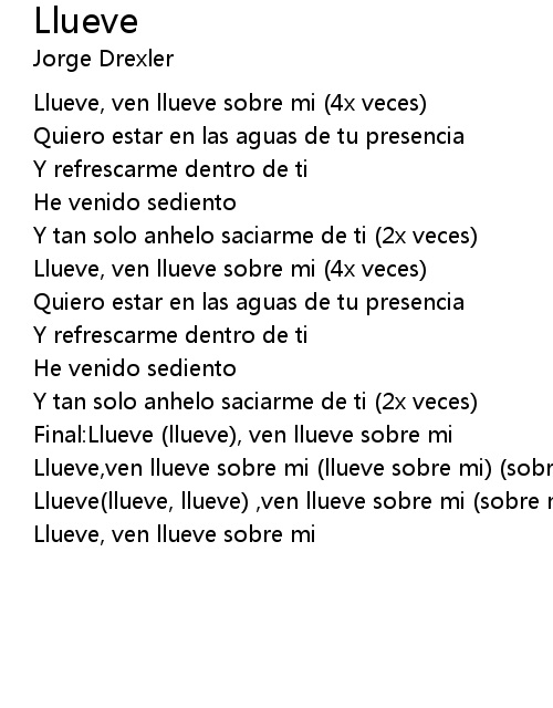 Llueve, ven llueve sobre mi (4x veces) |