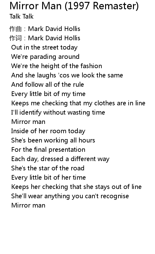 | [00:00.30] | zuò cí: Mark David Hollis |