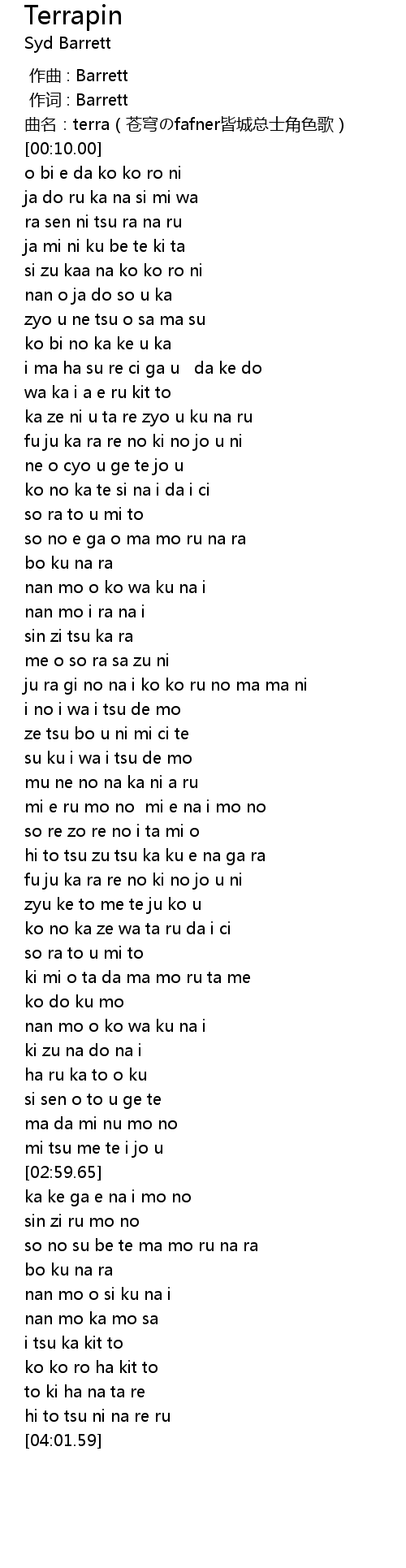 | [00:00.02] | 曲名:terra(苍穹のfafner皆城总士角色歌) |