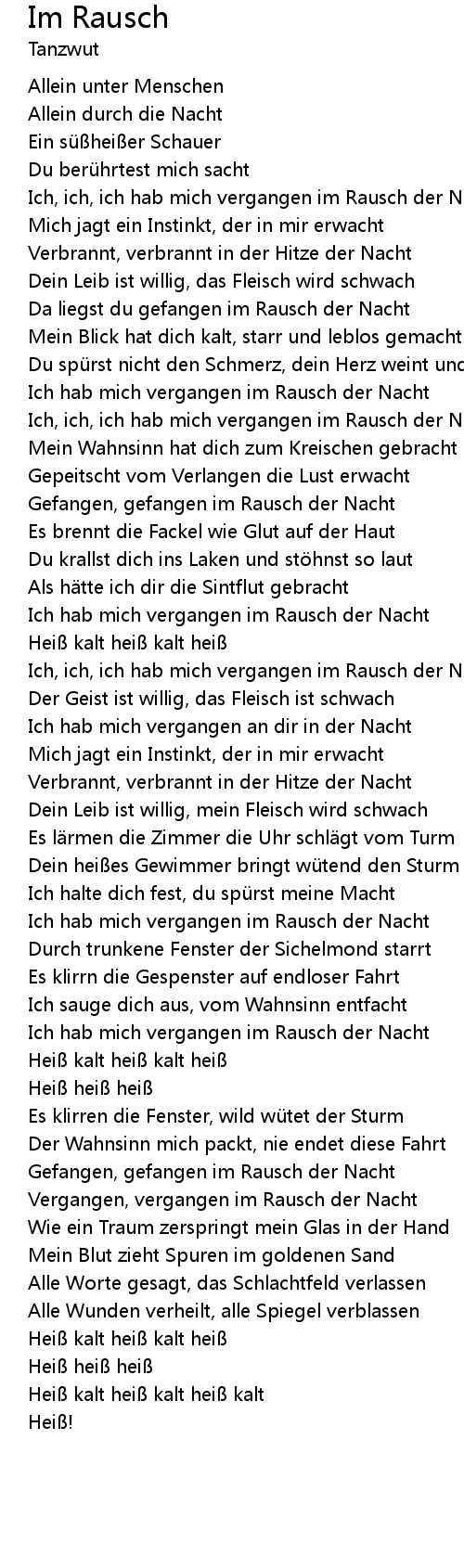 | Ich, ich, ich hab mich vergangen im Rausch der Nacht | |