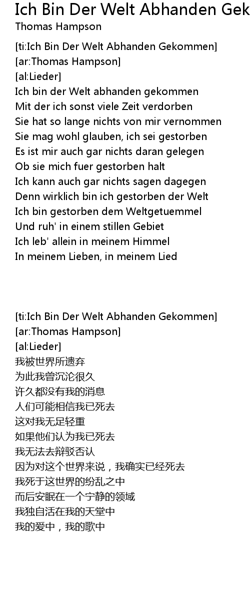 [ti:Ich Bin Der Welt Abhanden Gekommen]