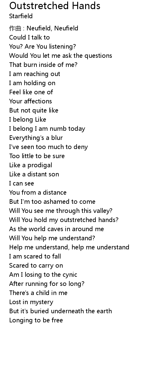 | Will You hold my outstretched hands? | |