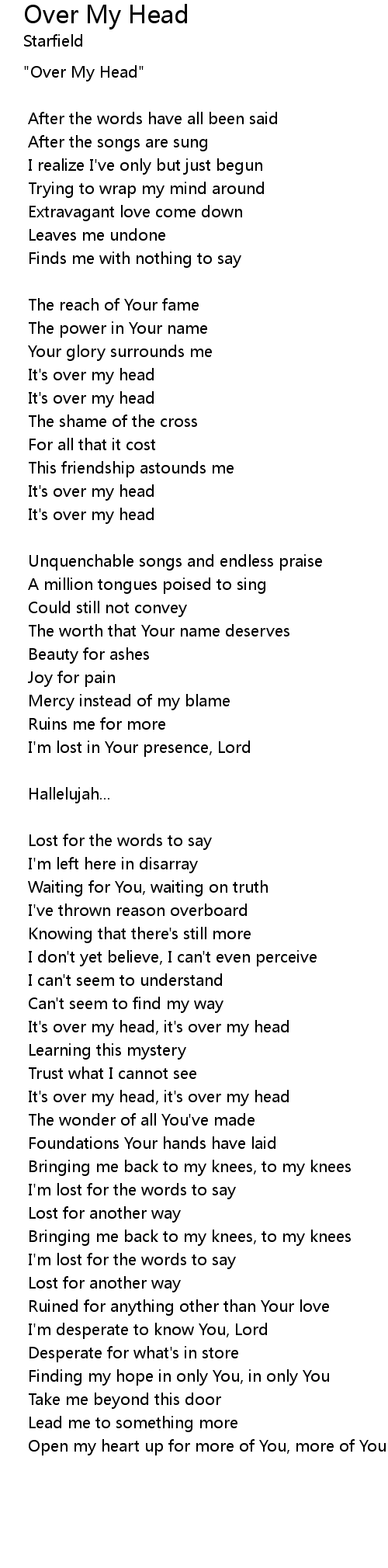 | It's over my head, it's over my head | |