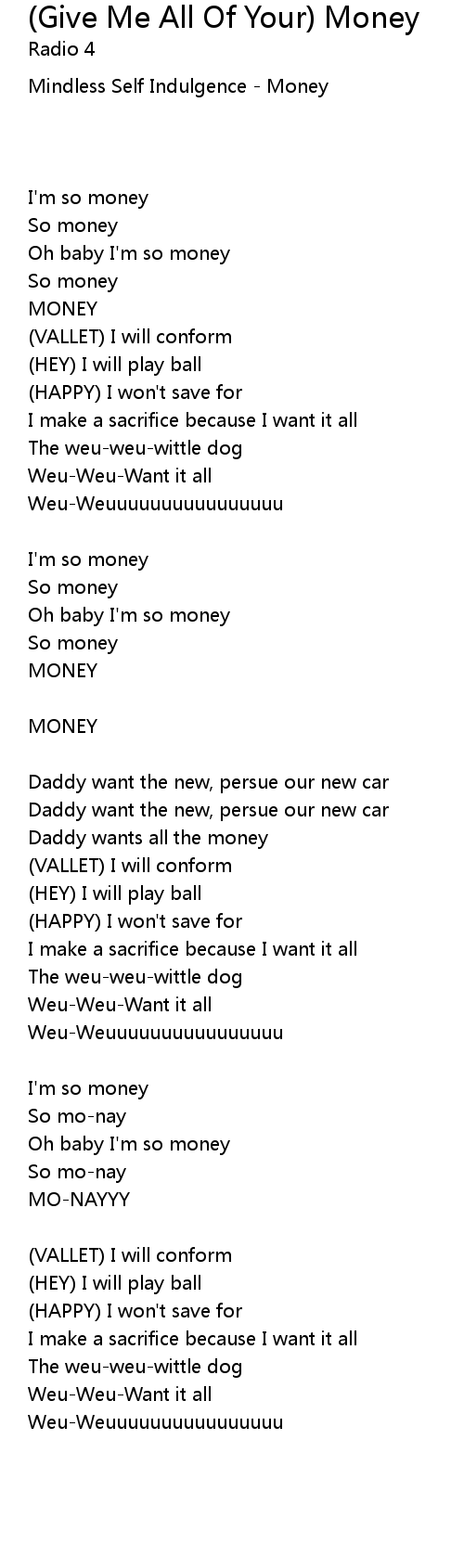 (Give Me All Of Your) Money Lyrics