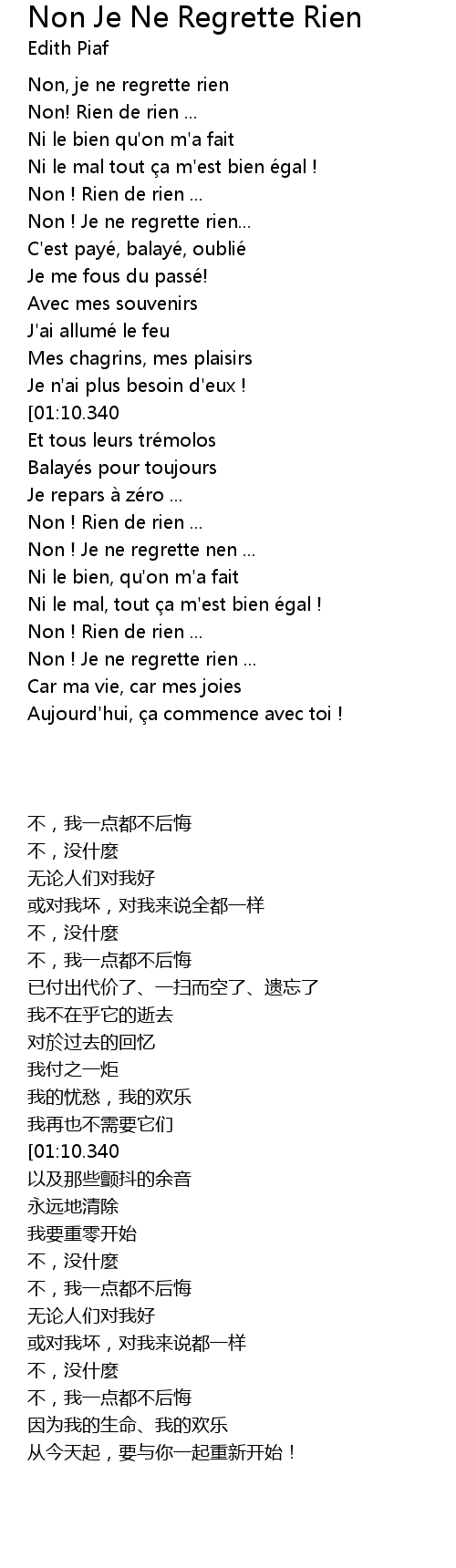 | [00:11.340] | Non, je ne regrette rien |