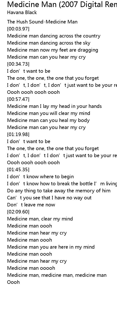 | [03:07.12] | Medicine man, medicine man, medicine man |