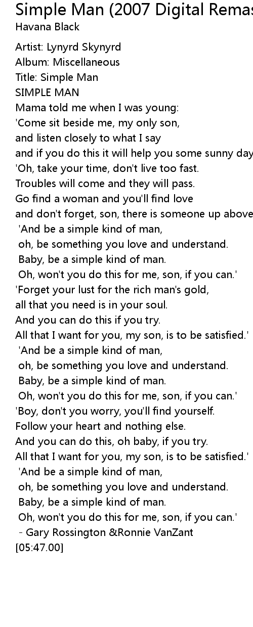 [05:24.97] Oh, won't you do this for me, son, if you can.'