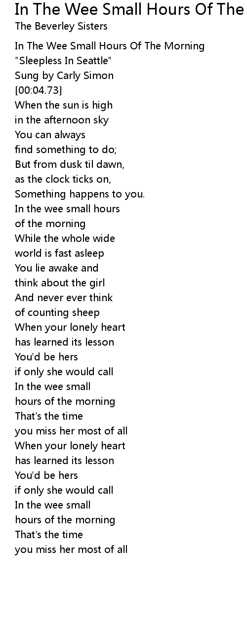 | [00:01.47] | In The Wee Small Hours Of The Morning |