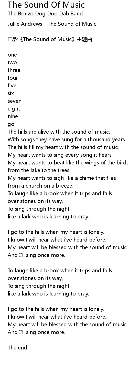 | The hills are alive with the sound of music, | |