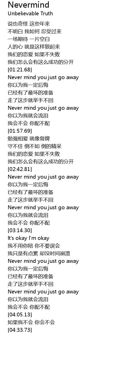 | [03:20.00] | 我不用你陪 你不要误会 |