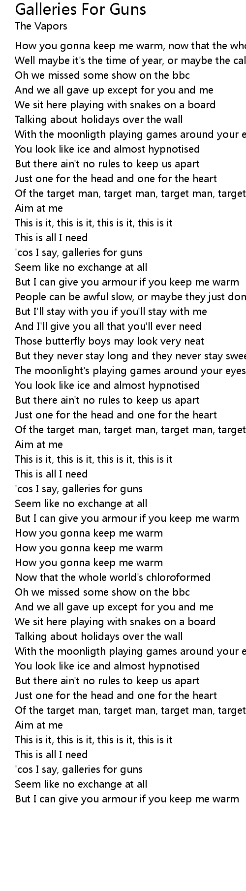 But I can give you armour if you keep me warm |