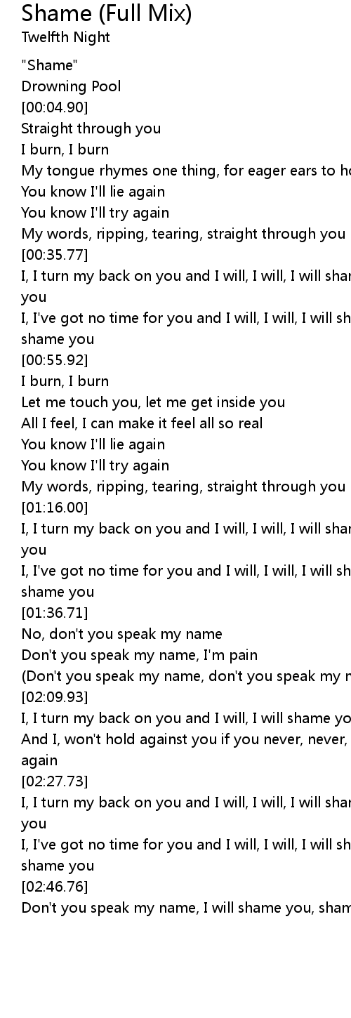 I, I turn my back on you and I will, I will, I will shame you, shame you |