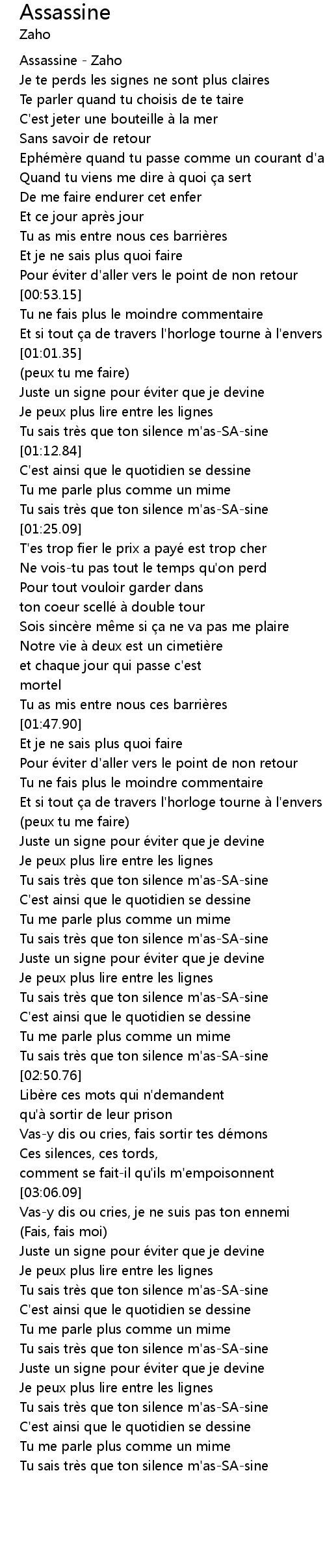 | [00:01.03] | Assassine - Zaho |