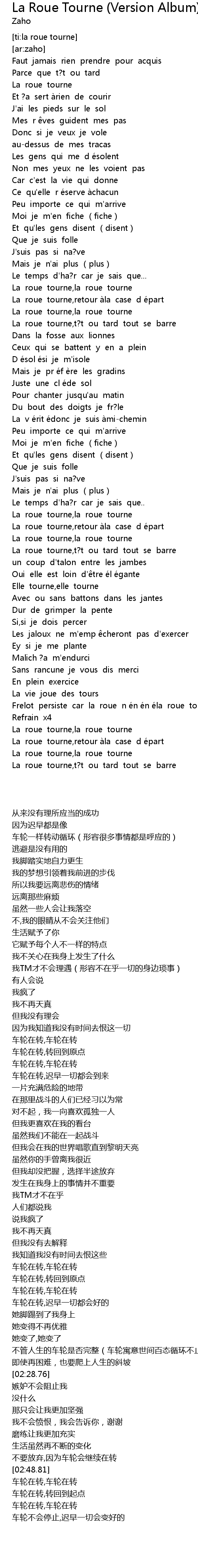 | [02:05.03] | La roue tourne,t?t ou tard tout se barre |