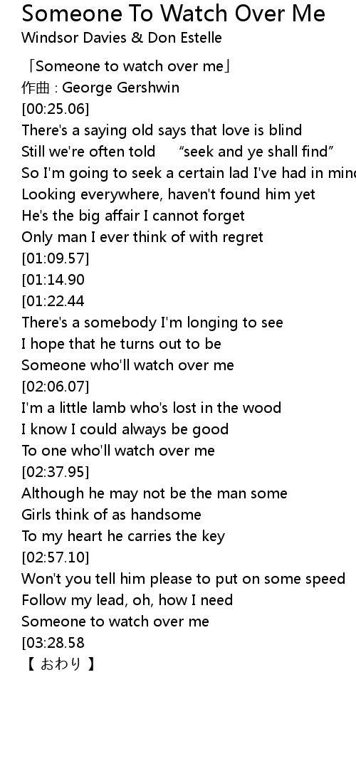 | [03:18.20] | Someone to watch over me |
