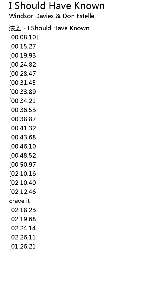 | [03:27.19][02:10.40][00:53.65] | I should have known |
