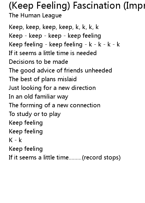 | Song | (Keep Feeling) Fascination (Improvisation) |