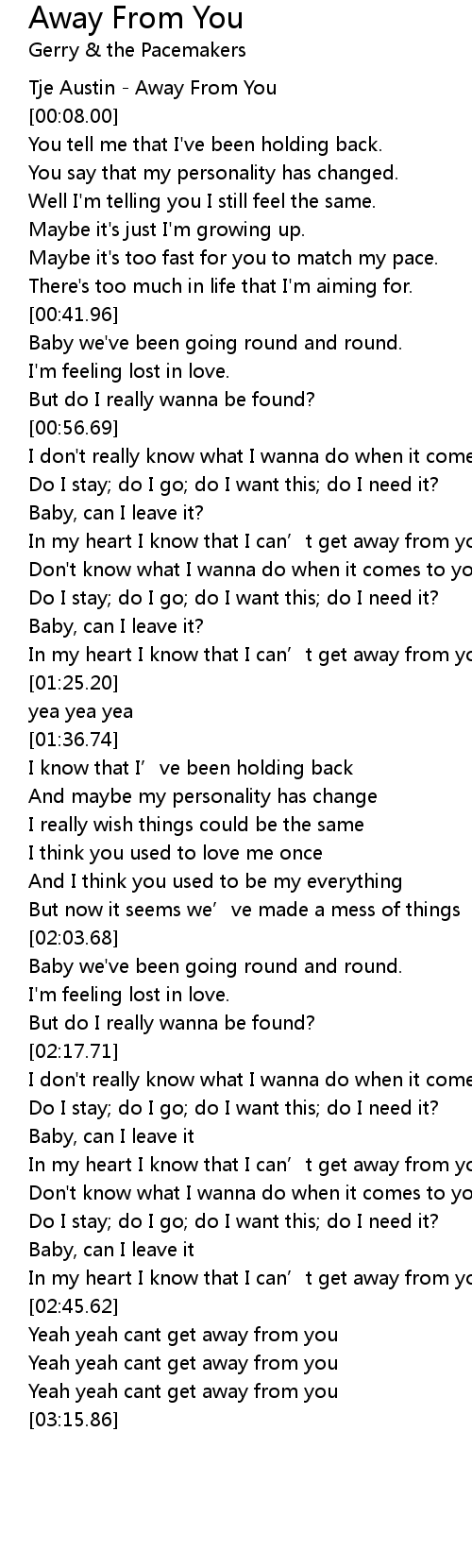 | [02:42.28] | In my heart I know that I can’t get away from you |