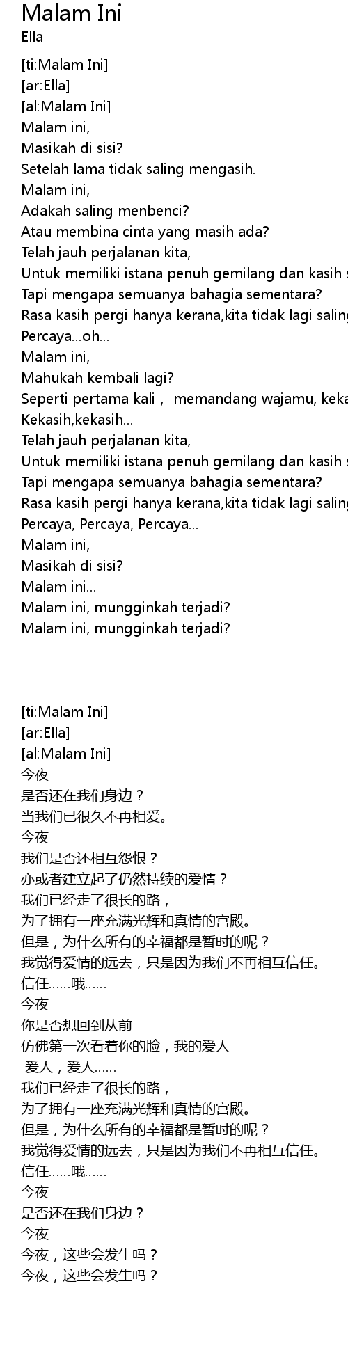 | [01:37.00] | Rasa kasih pergi hanya kerana, kita tidak lagi saling percaya. |