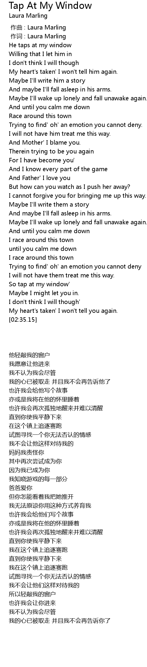 | [02:19.26] | So tap at my window' |