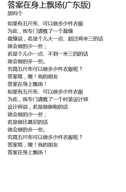答案在身上飘扬(广东版) da an zai shen shang piao yang guang dong ban Lyrics