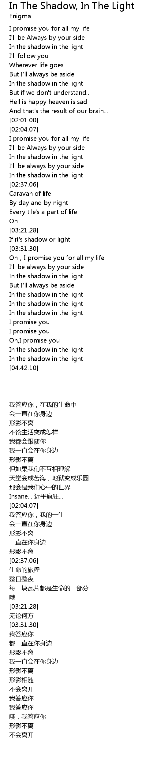 | [04:20.63] | In the shadow in the light |