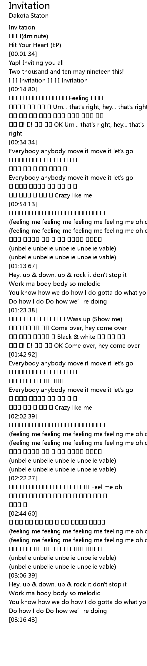 | [00:09.51] | I I I Invitation I I I I Invitation |